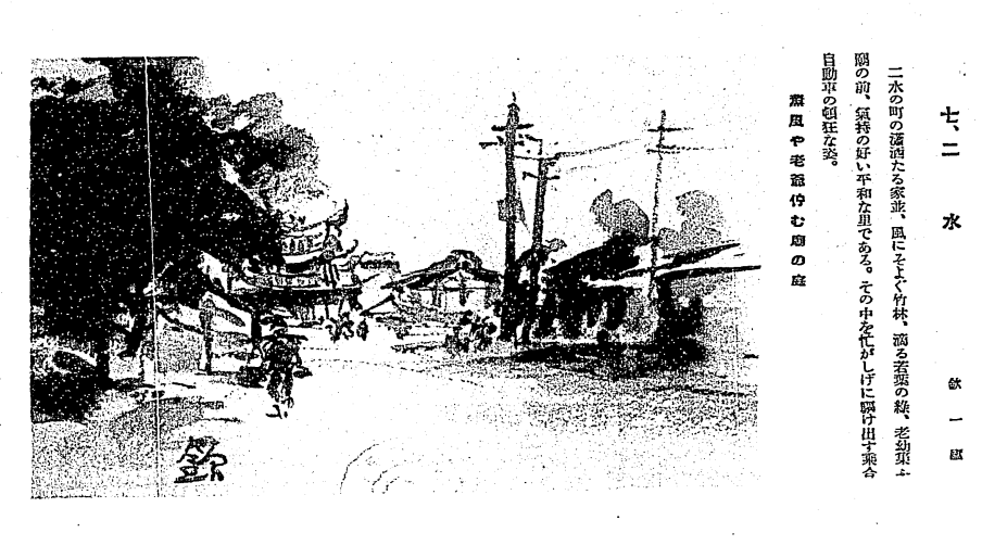 (2026.01.14 後續更新:倪蔣懷和石川欽一郎皆畫過二水安德宮,從石川先生將〈二水安德宮〉編入《山紫水明集》可看出二水風光在畫家眼中具臺灣代表性。師生是否相約前往二水,目前缺文獻佐證。感謝「二水漫遊小旅行-東螺田野工作室」幫忙定位兩位師生畫家的足跡,並提供戰後同場景舊照片。)