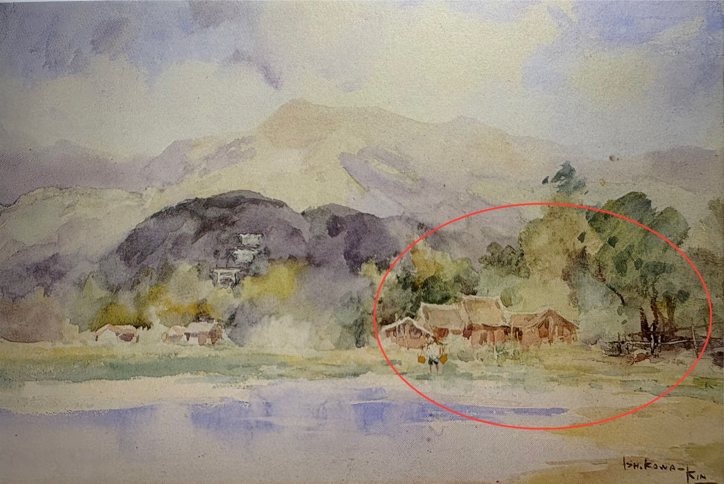 2026.01.02 後記:有關倪蔣懷《舊家(老房子)》畫中場景最新更新。從石川先生的另一幅作品可清楚判斷,倪蔣懷畫中作為配角的老屋,確定非劍潭寺,而是劍潭民宅。石川先生從臺北第一座公園 — 圓山公園 — 望向基隆河北岸,倪蔣懷則越過明治橋到對岸,站在河岸仰望高聳的茄苳樹。