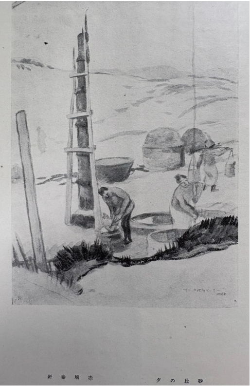 赤城泰舒《砂丘の夕*(沙丘之夜)》みづゑ130号 / 1915年12月(黑白圖檔)
