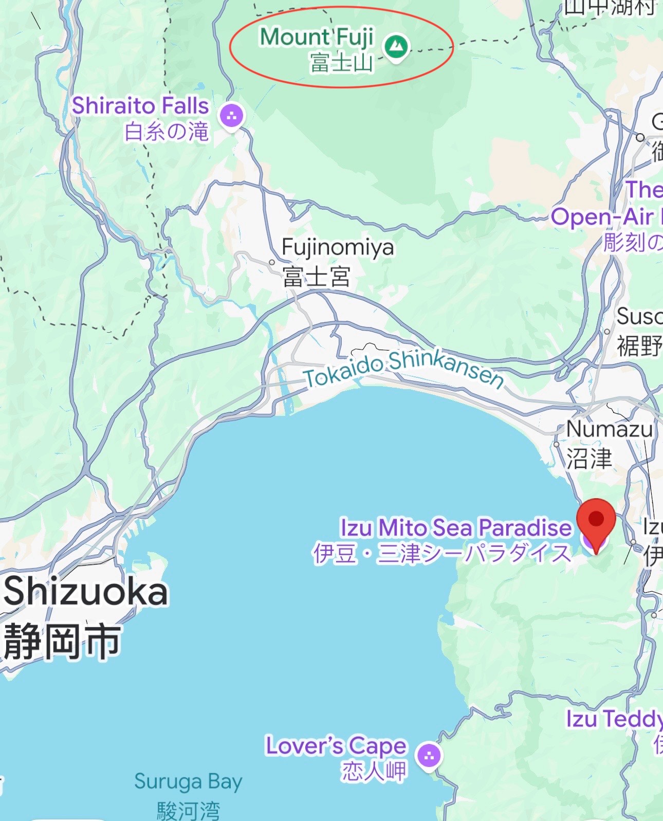 三津海濱和淡島的直線距離大約1.8公里 / 淡島和富士山腳的直線距離大約65公里