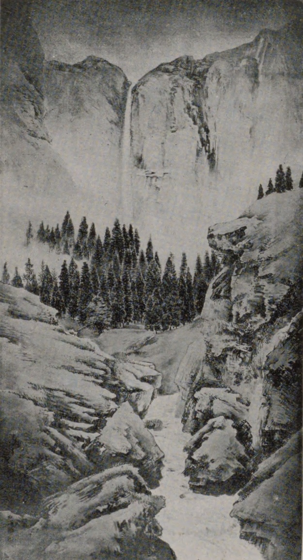 野沢如洋《米國ヨセミテ渓谷》Yosemite Valley in California, United States / 取自薄田斬雲《野沢如洋 : 豪侠画人》附圖