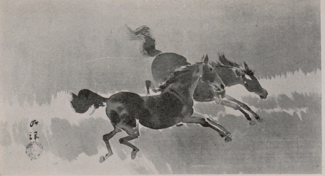 偏愛畫馬的野澤如洋是倪蔣懷求畫的對象,也是日本畫畫家進出西洋美術界的第一人。石川欽一郎說,野澤如洋結合西洋畫濃淡明暗的調性,以及日本畫特有的感興與韻味,開展出水墨畫新面貌。