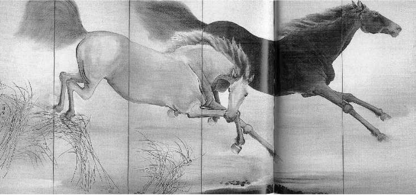 野沢如洋《金屏風に馬の圖》(京都奧井家收藏)/ 取自薄田斬雲《野沢如洋 : 豪侠画人》附圖