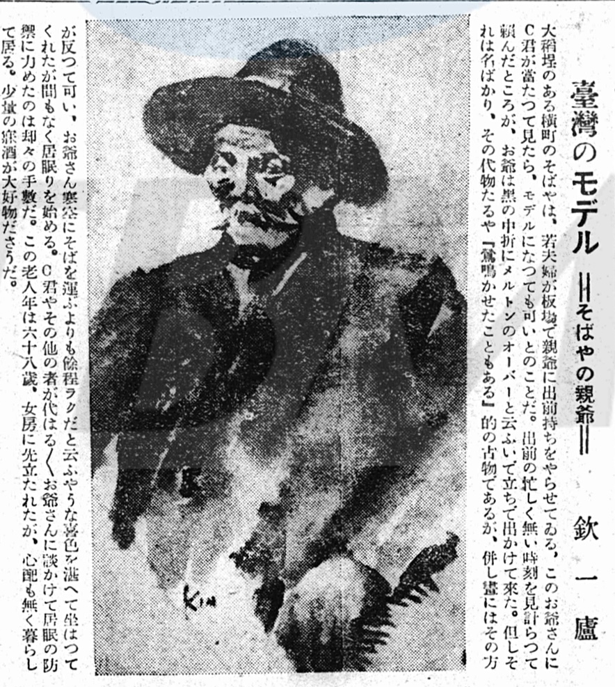 石川欽一郎1924年1月底第二度來臺,對臺灣的在地文化興趣不減,選取模特兒時也特別慎重。這位大稻埕巷弄裡蕎麥麵店老先生吸引石川先生的,是他的年紀,以及他身上的陳舊感 …